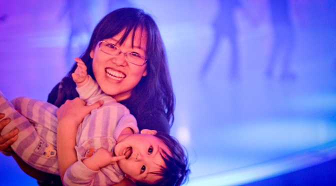 Our little Quentin bear just had fun looking at the lights. During blackout it seemed like we were at a rave or something! LOL! No, we didn’t take babies to a rave. It was just Classic Skating.